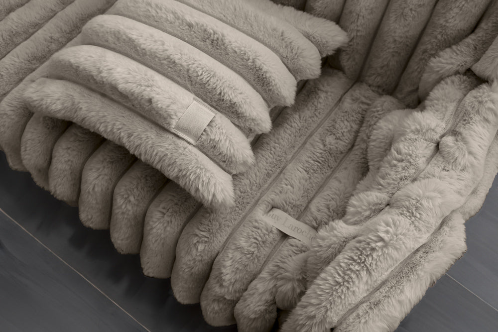 Extremely soft to the touch fur throw made of 100% art. strip jacquard rabbit fur ultrasoft.